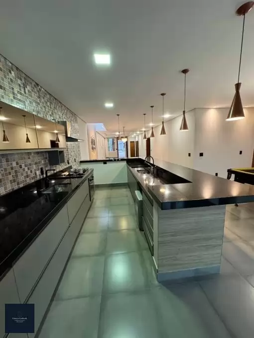 A casa é composta por 03 quartos, sendo 02 suítes, sala de estar, sala de jantar, um escritório/quarto, lavabo, espaço gourmet, piscina. Casa com alguns móveis planejados, lavanderia e garagem para 03 carros cobertos e mais 03 descobertos.
